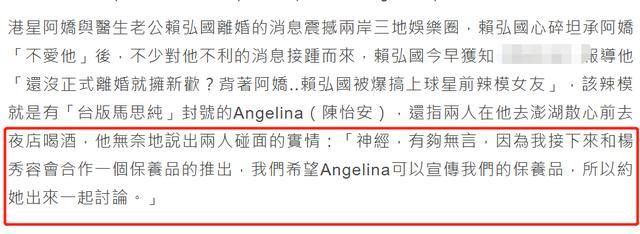 紧接着赖弘国亲自回应,怒斥“神经”,表示跟女方是因为接下来有合作,才约一起讨论。面对如此多流言蜚语,赖弘国出面说明似乎也是想要挽回形象,澄清一些不实言论。
