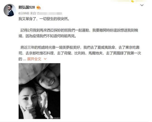 回到他5月8日社交平台发的长文,虽然近千字的长文没有出现过“离婚”两个字,但开头“我又单身了,一切发生的很突然。”以及结尾“我还是会跟你求婚,和你结婚。”显然是在表示双方已经离婚,如果只是分居怎能算单身?这篇文章显然给网友带来误导,坚信两个人已经离婚,而这篇长文,也捏碎了两个人重归于好的最后一丝希望。如今改口说“分居”,赖弘国真的是打自己的脸。