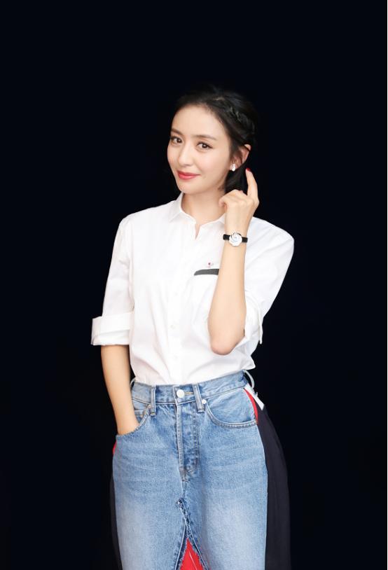佟丽娅身穿白色衬衫将她的气质衬托的十分干净,她的长相明媚搭配白色衬衫更能凸显出清纯感。这款衬衫上带有条纹装饰,削弱了普通白色衬衫的单一感,简约风十足,因为她下身搭配的裙子样式太独特,所以上身选择的服装要简单,这件衬衫就刚刚好。衬衫的版型很修身,更适合身材纤细的女性,下身也可以搭配牛仔裤更显干练气质