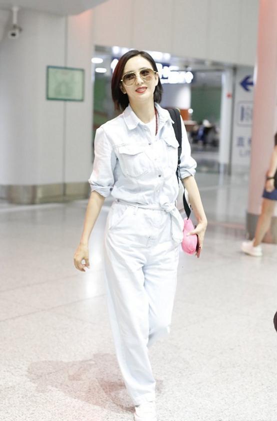这款水洗蓝衬衫将佟丽娅衬托的很小清新,颜色也更加减龄,衬衫的版型宽松但下摆长度一般,所以还是更适合身材纤细的女性,佟丽娅内搭了一款白色T恤中规中矩,单穿衬衫的效果也很好。她搭配的白色拖地牛仔裤将她的下半身衬托的有些宽壮了,但是好在上身纤细和裤子的高腰设计,让整体效果看着还不错