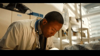 救治过程中,穆索克想将呼吸管插入莫内口中帮助其顺畅呼吸。