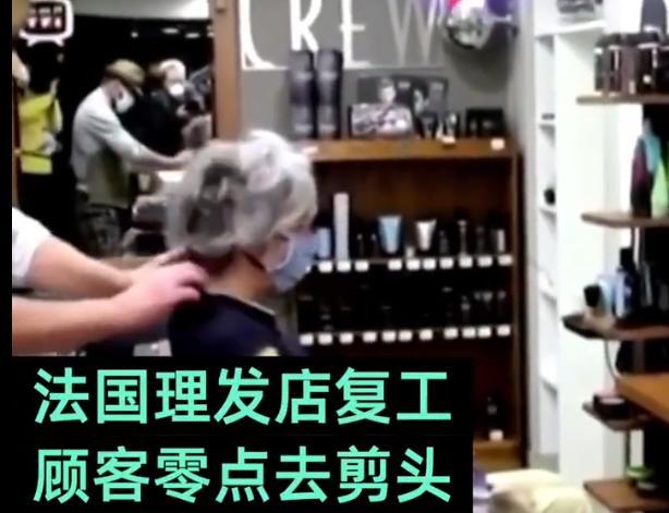 法国自5月11日零时起,逐步解除了近两个月的禁足令。理发店、服装店、书店等被允许重新营业。在法国西部的一个小镇,一家理发店凌晨解封时间一到,就开门迎客,为急于理发的顾客提供深夜服务。