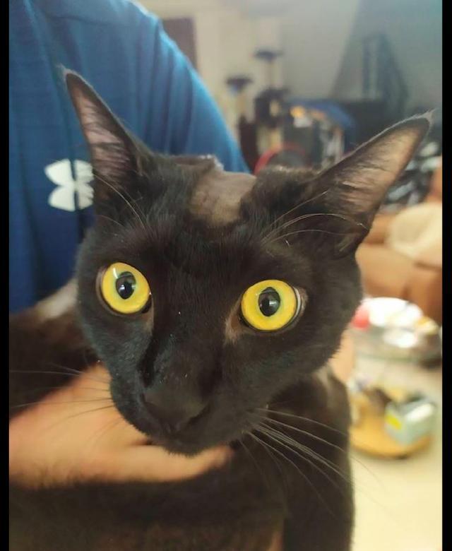 就有这么一位网友,家里有养了两只猫咪,其中有一只黑猫,平时就是很活泼的那一种,没有一刻是老实的。最近天气炎热起来,网友就打算给它们剃一下毛发。去宠物店的话太贵,于是就亲自给它们剪。结果在剃的时候,猫咪突然将头抬高了,导致剃子直接将猫咪头上的毛发给剃掉了!这下子猫咪的头上就缺了个口子!