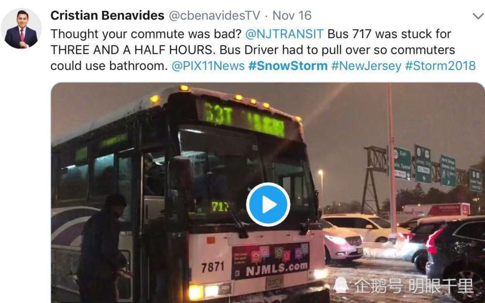 另一位网民Anjelica也表示,这场雪比预期还严重,自己的男友也因为混乱的交通情况而被困在公交车上达三个小时。