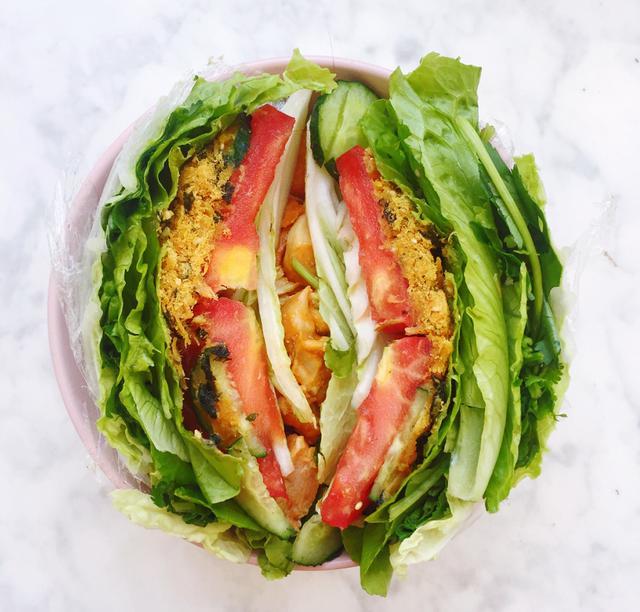 Step7:最后一步 再取一片生菜叶包住