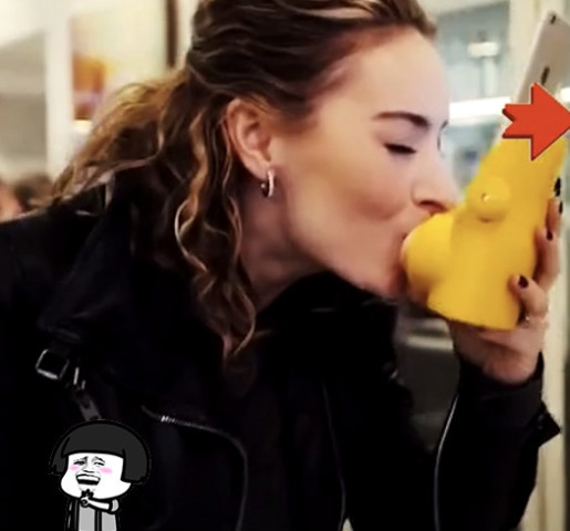 而手机上应该是在进行视频通话版,然后下面有一个可以传送接吻的一个东西。里面大概是一种能够模仿异性在亲上去之后的嘴唇的样子,然后输入过来,让这边的人能够感受到异性的嘴唇的一个机器。这样的机器让许多人都觉得十分的神奇,不知道你的感觉呢?