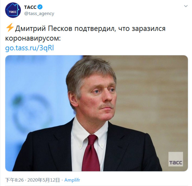 冠形病毒 俄总统新闻秘书佩斯科夫证实自己