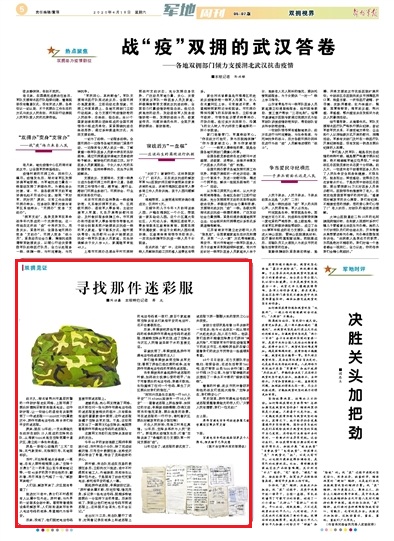 遗憾的是,热心网友搜遍了网络,找不到任何一张与那件写满电话号码的迷彩服直接相关的图片,只有媒体报道的寥寥数语中提到,这件迷彩服珍藏于空降兵军史馆。于是,这位网友发出了一篇网文《@空降兵:俺就想看看那件写满电话号码的迷彩服》。