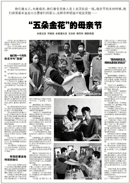 5月10日是母亲节,盐山援鄂“五朵金花”和她们各自的母亲过了一个特别的节日。