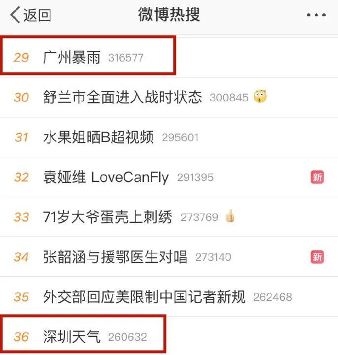 直接把广州暴雨、深圳天气下进了热搜