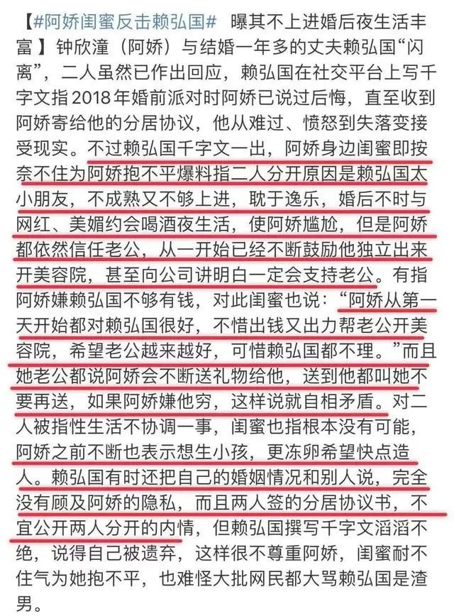 离婚消息一出,看到赖弘国说的离婚原因以及微博“小作文”,阿娇的闺蜜可看不下去了,马上出面反击!