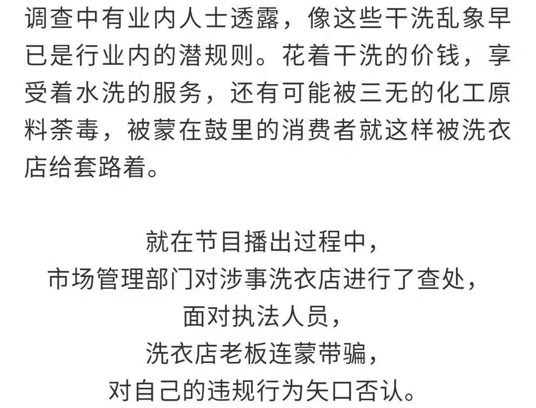 水洗代替干洗,大品牌、连锁店也这么干!