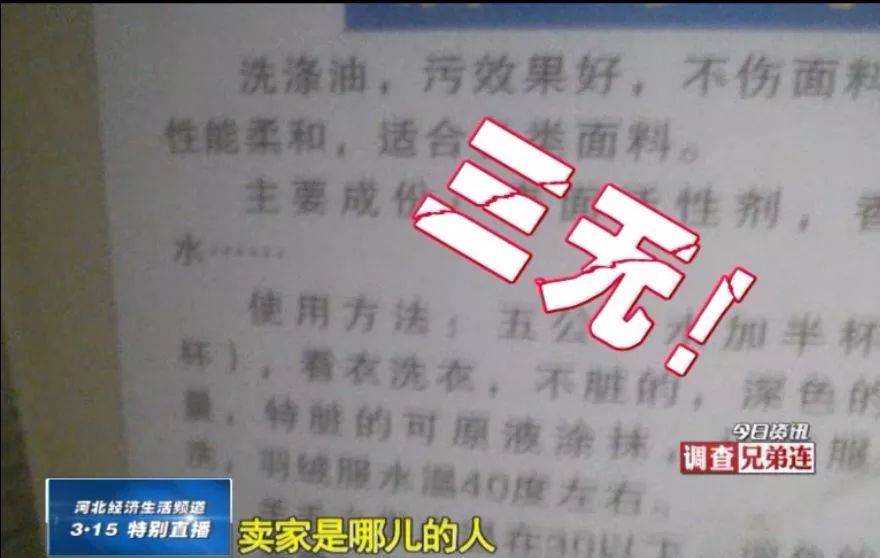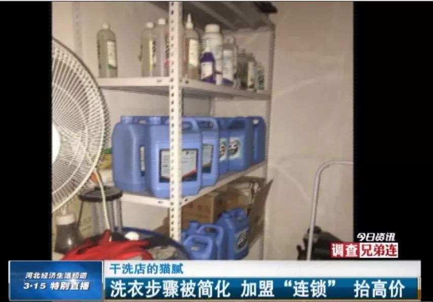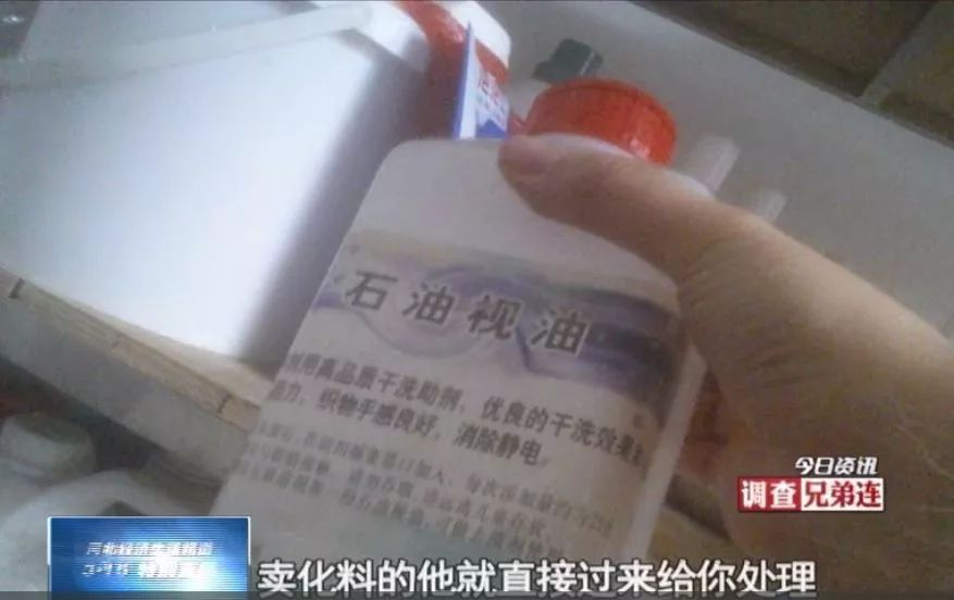 水洗代替干洗,全靠店长口中的“料”,那这“料”又是何物呢?在洗衣间里,记者看到了一些瓶瓶罐罐,上面没有任何产品信息。这些就是老板偷梁换柱的关键证据。