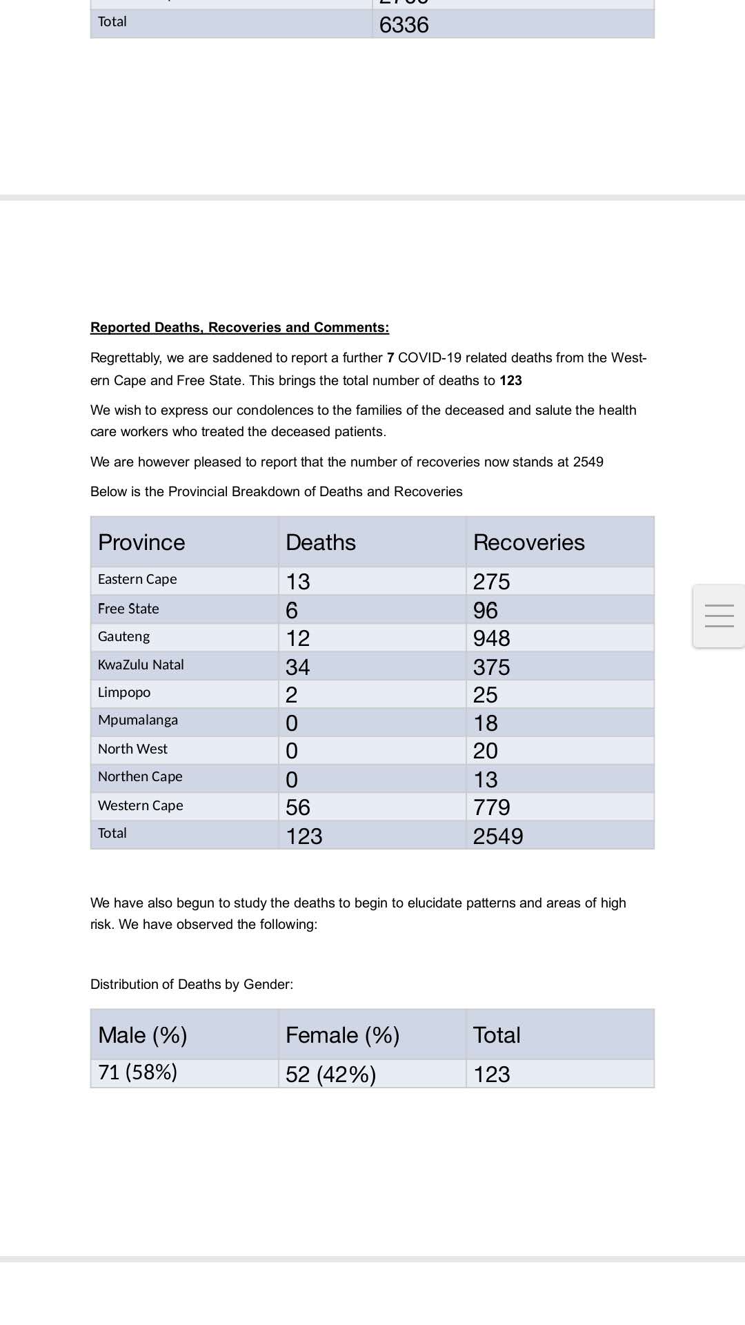 5月2日新增7例新冠肺炎死亡病例,南非共123人因新冠肺炎去世。康复人数为2549。