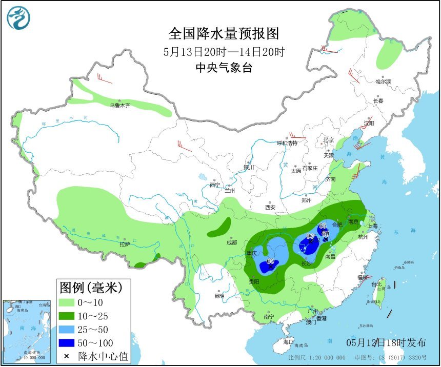似乎,在广东这场猛烈暴雨过后,我国中东部地区的降雨开始减弱,但实际上并未如此――中央气象台的预测认为,从5月13日开始,我国南方地区的降雨将开始明显增强,长江中下游的多个省份都可能出现中到大雨甚至局地暴雨,在这当中,武汉可能成为暴雨中心。