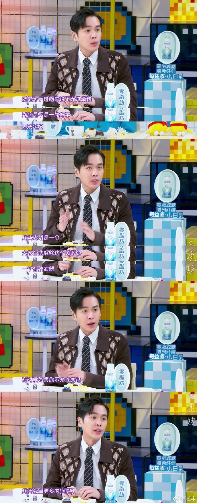 但是张若昀对于离婚的看法,他这段关于离婚的发言简直戳到心里面去了。他不避讳在新婚不久讨论离婚的话题,甚至用上了“澄清”的字眼,也不想给大家一种错误的观念。婚姻是可以修正的,离婚权也是对双方平等的一种保障,其实离婚是一个,大家合法解除这个关系的一个有效武器,有时候如果你不允许的话,其实会出现更多的问题。