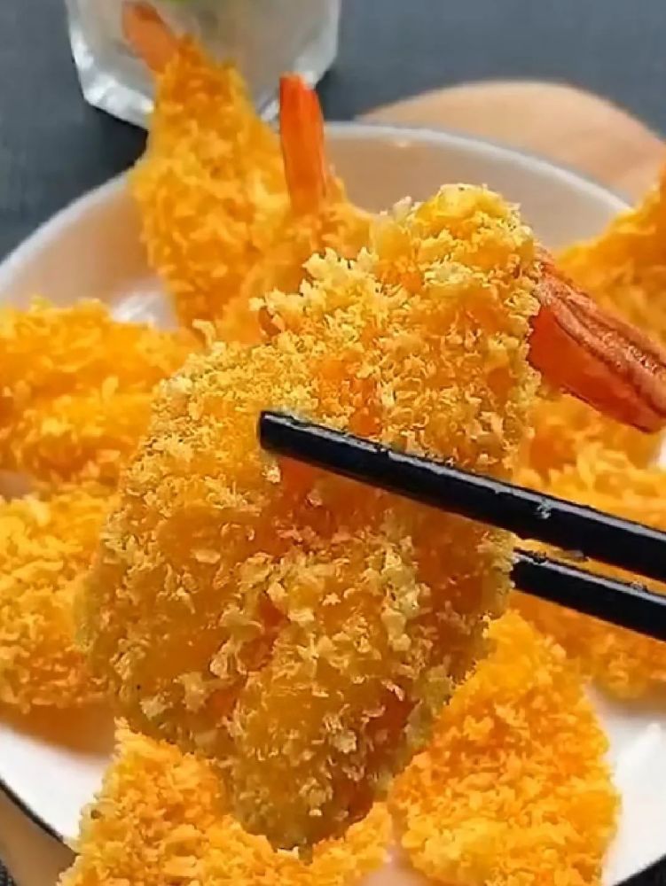 这不就是中式天妇罗吗!金黄薄脆的炸衣,一咬随即崩落,鲜甜的虾肉飘出阵阵油脂香气,就算是高热量我也认了!