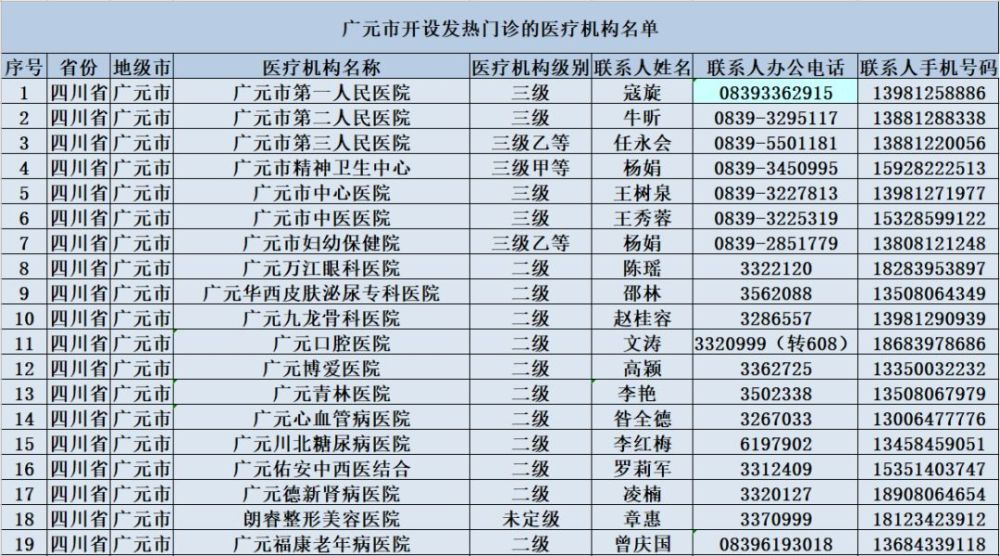 附:广元市开设发热门诊的医疗机构名单