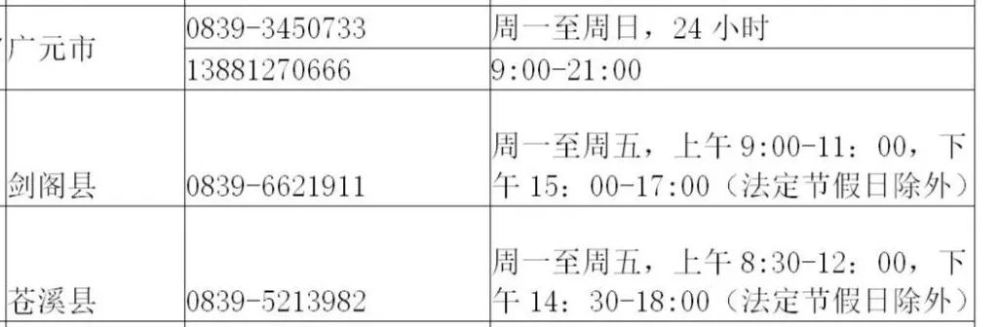 广元市心理援助热线名单