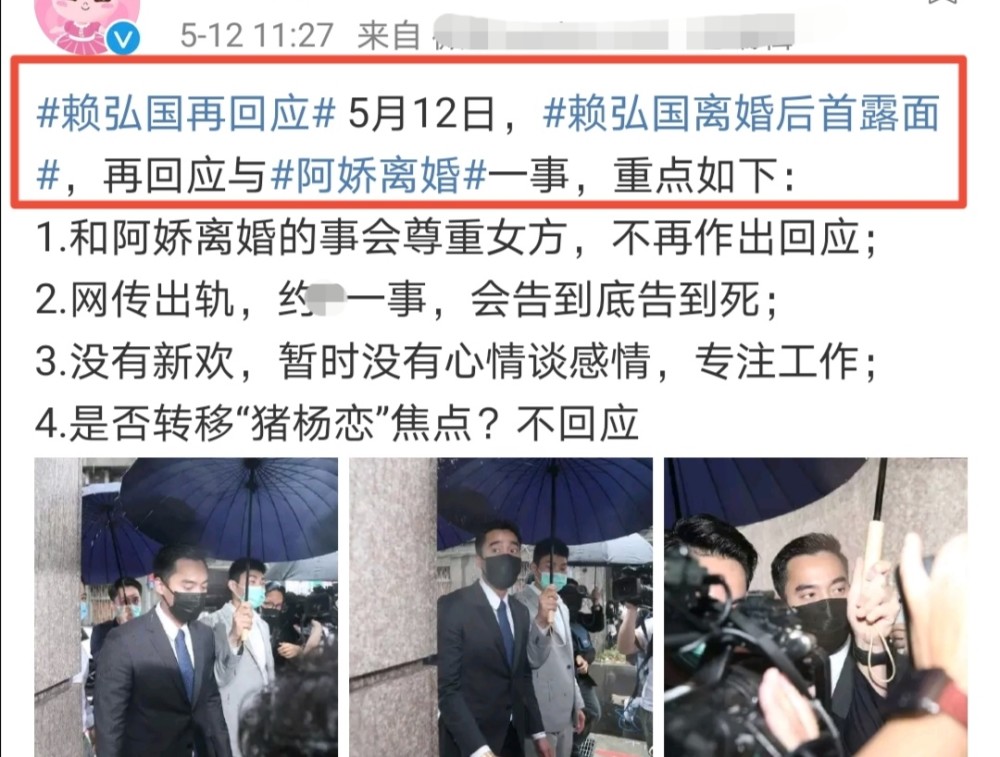 确实,如果是凭空捏造、没有任何证据诋毁赖弘国,他是有有权维护自身权益和名誉的。不过这次赖弘国与阿娇的感情是真闹掰了,先前阿娇和赖弘国都表示不会对婚姻一事做任何回应,但坦言两人在这段期间签订分居协议。