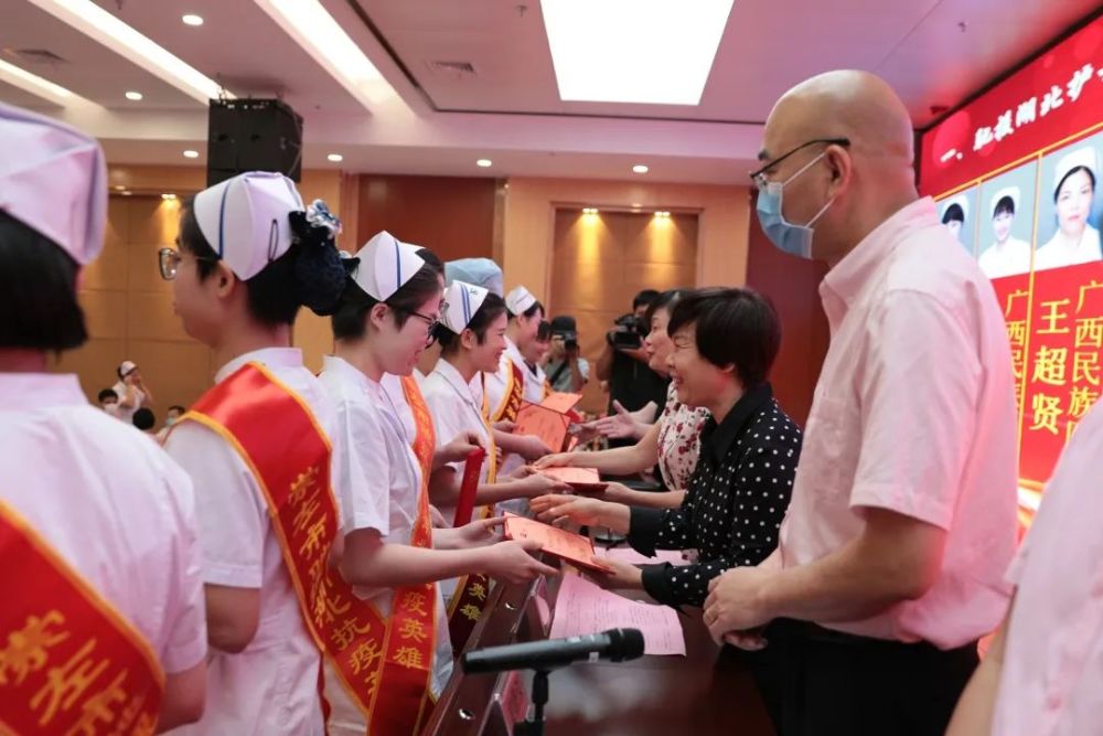 大会表彰了一批护理队伍的先进代表,广西民族医院林幼珍、崇左市人民医院农妹秋等10名援鄂医疗队队员获得驰援湖北优秀护士奖,黄丽华、易紫连等获得2019年崇左市优秀护士奖,黎丽江、黄年菊等获评优秀护士长。通过表彰大力弘扬一线护理人员英勇战疫精神,向全社会展现新时代护理工作者的精神面貌和职业风采。副市长黄覃梅在会上致辞,并为获奖代表颁奖。