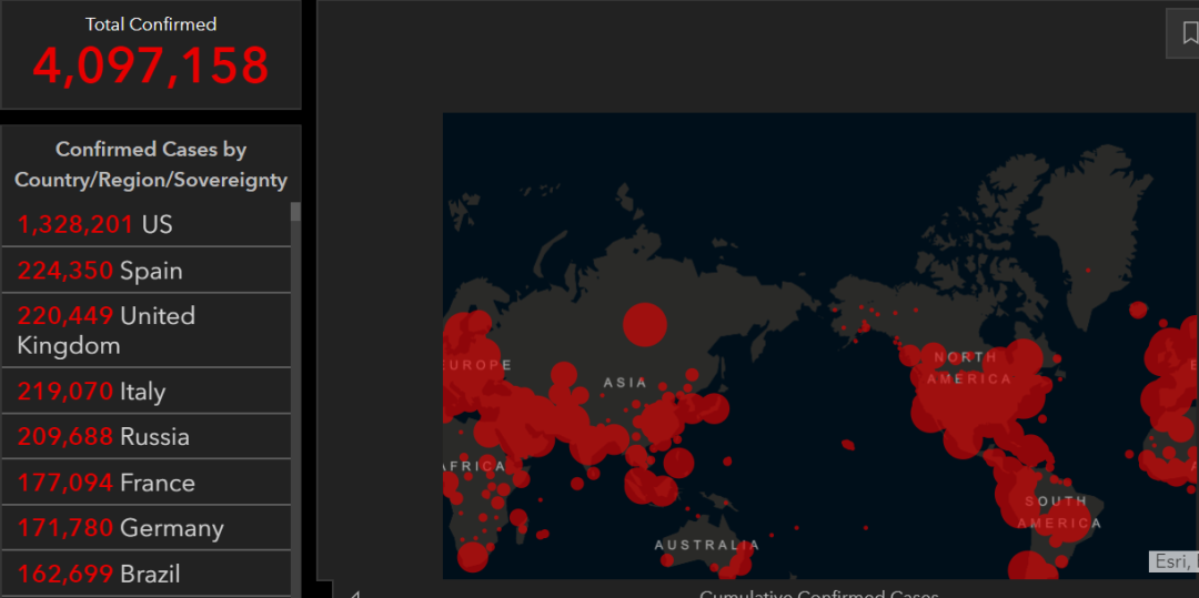 当地时间5月10日,根据约翰斯·霍普金斯大学实时数据,美国新冠肺炎确诊人数已经达到了1328201例,新冠病毒感染死亡人数达79124例。