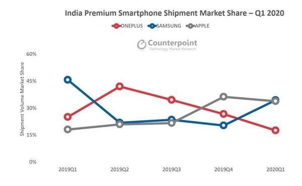 而一加,身为自诞生之初便主攻海外市场的存在,虽然在中国市场的知名度有限,但在印度市场,一加系列手机的表现却一直十分出色。不过在苹果iPhone 11的重压下,一加2020年Q1季度的表现并不尽如人意,堪堪排在第三名,勉强保住国产手机的颜面。