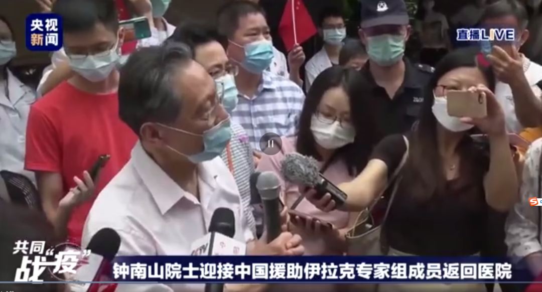 5月11日,钟南山接援伊拉克专家回院报到时说:我作为老职工,非常感谢你们!现在正是非常困难的时候,既要复工又要严防。9日吉林舒兰出现11个聚集病例,往前走我们还有很重的任务。我相信年轻人经过锻炼,以后都会成为骨干,很快就会比我们这些老一代干得更好!