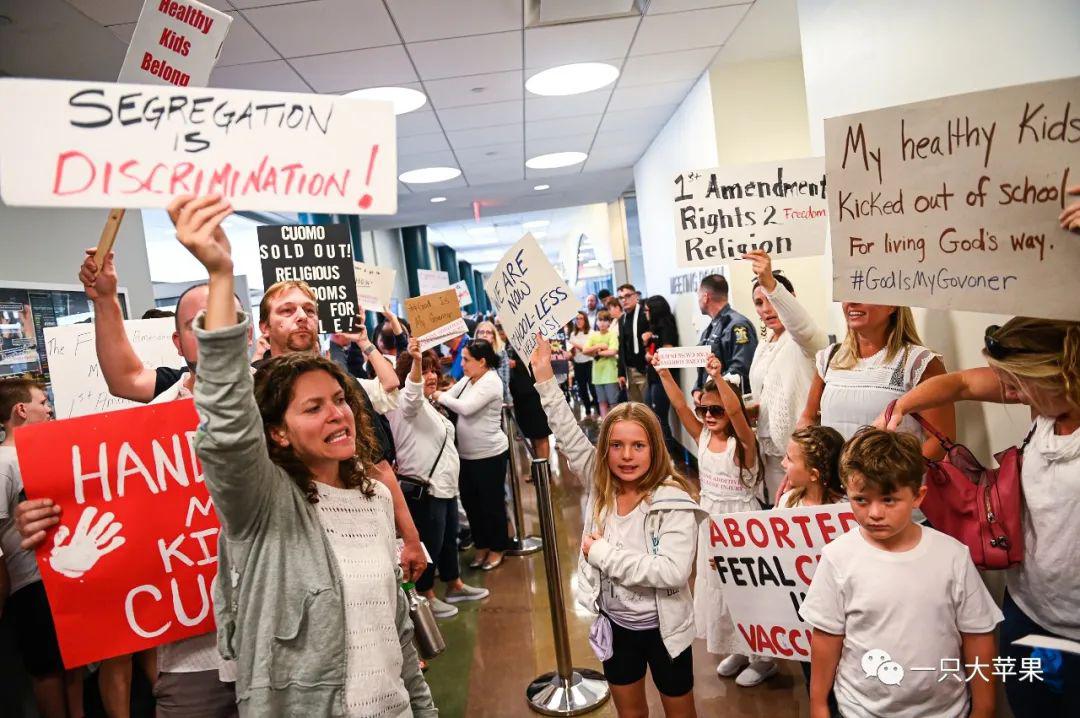 在当天,各个游说团体、维权组织等齐聚州议会大厅,高喊各自支持的理念和口号,其中声势最浩大的就是反疫苗人士团体,里面有许多传统犹太人士。而示威者多是家长,他们还带着自己的孩子参加游行,反对政府强制让学童接受疫苗。我当时还有些不解,现在不是都2020年了,为什么还有这么多人反对疫苗?后来看了相关资料才了解,导致这些家长反对疫苗的原因有多种。