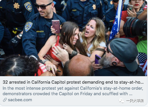 美国各州眼看在前期采取“社交疏离” 政策取得初步抗疫胜利,即将制定实施重开计划的节骨眼上,又遭遇了一波抗议示威的浪潮。而此次这股抗疫新阻力是一个在美国存在已久的老大难问题——反疫苗运动。在上周五,一张加州抗议“居家令”现场的照片在推特上引发热议。
