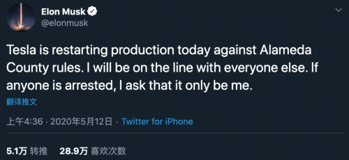 特斯拉强行复工 疯狂马斯克在线“求逮捕”