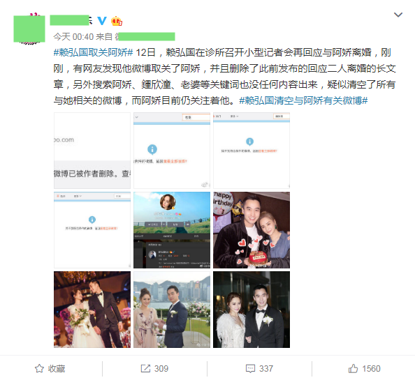 赖弘国取关了阿娇,并且删除了此前回应二人离婚的千字长文。