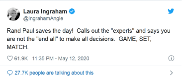 有人表示,“兰德・保罗反败为胜!请出‘专家’,告诉后者你不是能下定论、去做出所有决定的人”。