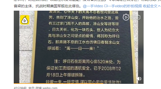 不过有专家揭秘了这块巨石的身世, 称它是龙门浩观音粱的主体,在抗战时期美国的军舰在此停泊过。