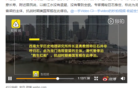 水底世界有什么东西人们还不清楚,像这个龙门浩观音粱的主体从水里浮现出来的这种情况,以后肯定还会出现不少次,希望大家以平常心对待,了解实际情况,不盲目跟风。