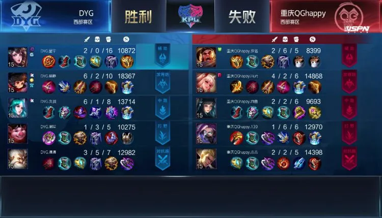 Game 1:DYG蓝色方,重庆QGhappy红色方