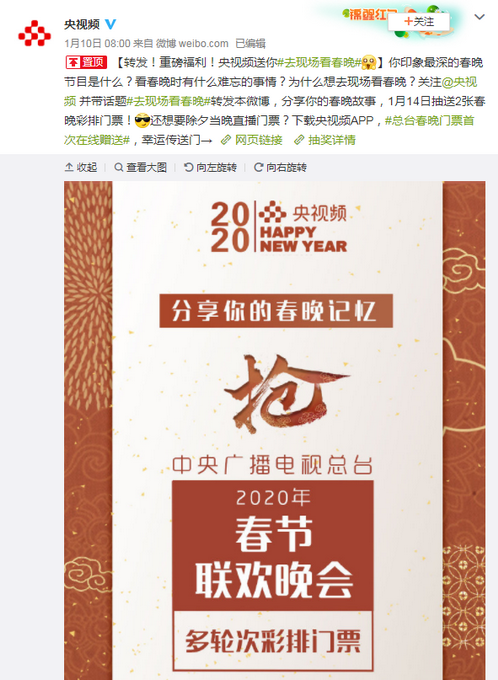 而若想获得门票,则需要下载“央视频”客户端,参与抽奖。