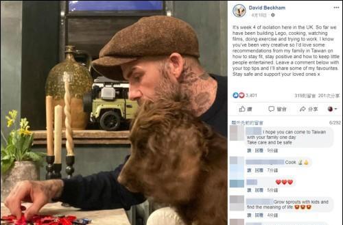 4月18日,贝克汉姆在脸书上发文,向台湾网民亲切问好,并称呼他们为“家人”。与此同时,贝克汉姆还虚心求教,询问台湾人有何防疫秘诀,如何在疫情期间保持健康和乐观。