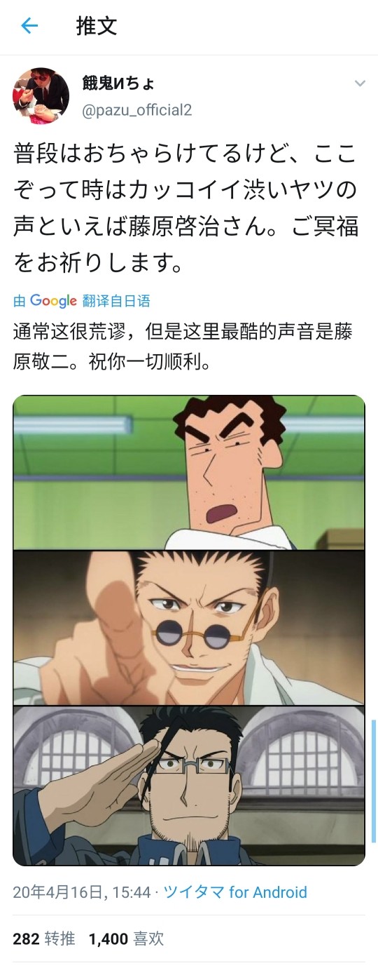 作为日本非常知名的配音演员,藤原启治的去世引起了日本业界不小的关注。