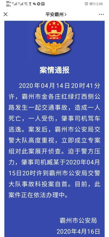 河北廊坊霸州市金各村红绿灯西侧公路发生一起交通事故,造成1死1伤,肇事司机臧某逃逸。17日,新京报记者从伤者家属处获悉,受伤女孩已死亡。目前,臧某已被刑拘。