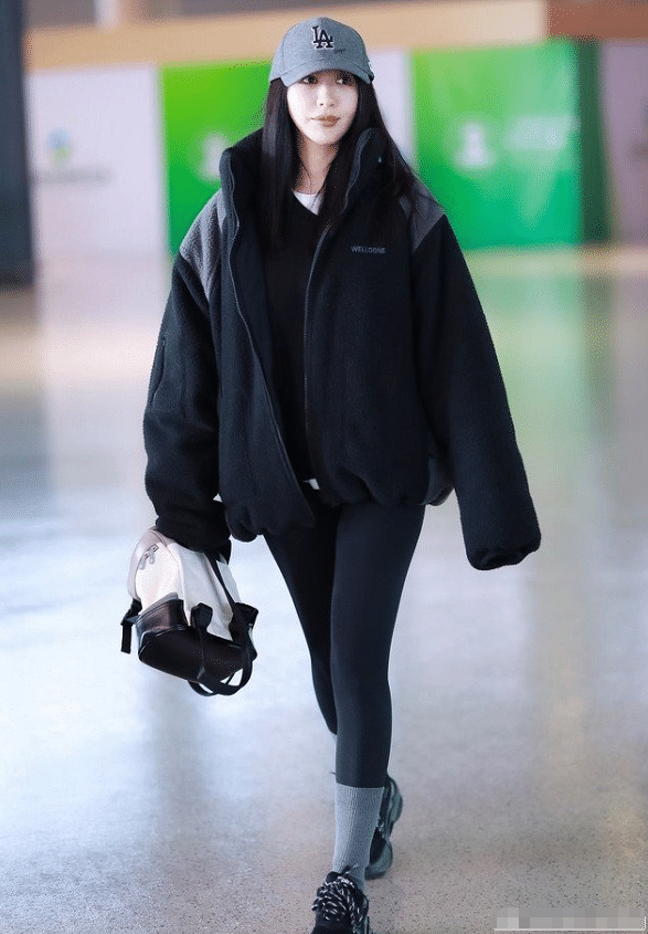 关晓彤对于leggings的喜爱绝对不亚于杨幂,在她之前的很多机场穿搭当中,都穿过多条不同颜色不同设计的leggings,很多小伙伴对于leggings可能都不是很熟悉,其实就是我们经常说到的打底裤,黑色的打底裤,更像是我们健身运动时才会穿到的健美打底裤,黑色经典又百搭,能够很好的修饰腿部线条。