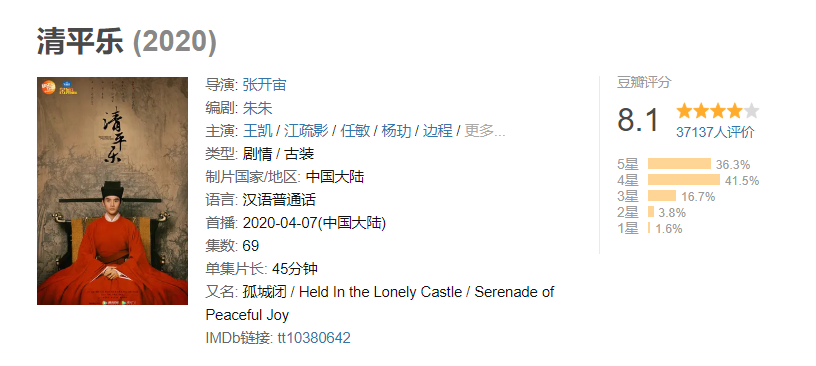 《清平乐》则由王凯、江疏影主演,张开宙执导,以69集的篇幅,讲述了北宋皇帝宋仁宗的一生。这是正午阳光第四部古装题材剧。从豆瓣数据来看,《清平乐》3万7000人打出8.1分,但其开篇的剧情节奏却遭到了质疑,导演张开宙更是首播当天就被骂上了热搜。