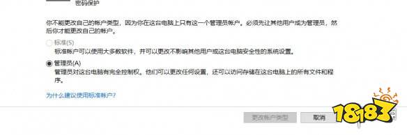 8、点击“更改账户名称”将新建的账户设置为“管理员”,将原来的账户设置为“标准”。