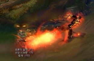 E技能的特效更加像是一道火焰龙卷风,给人的感觉打击感会非常强。而李青本人则被金光包围,强大的气势逼人。