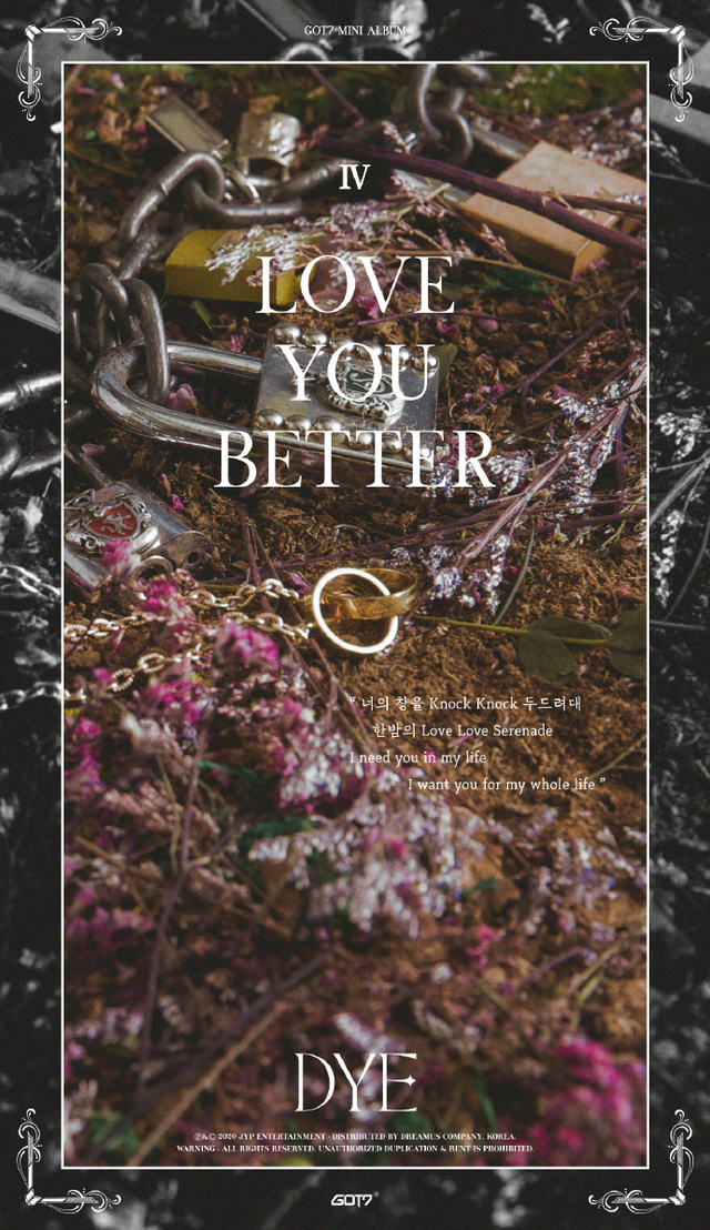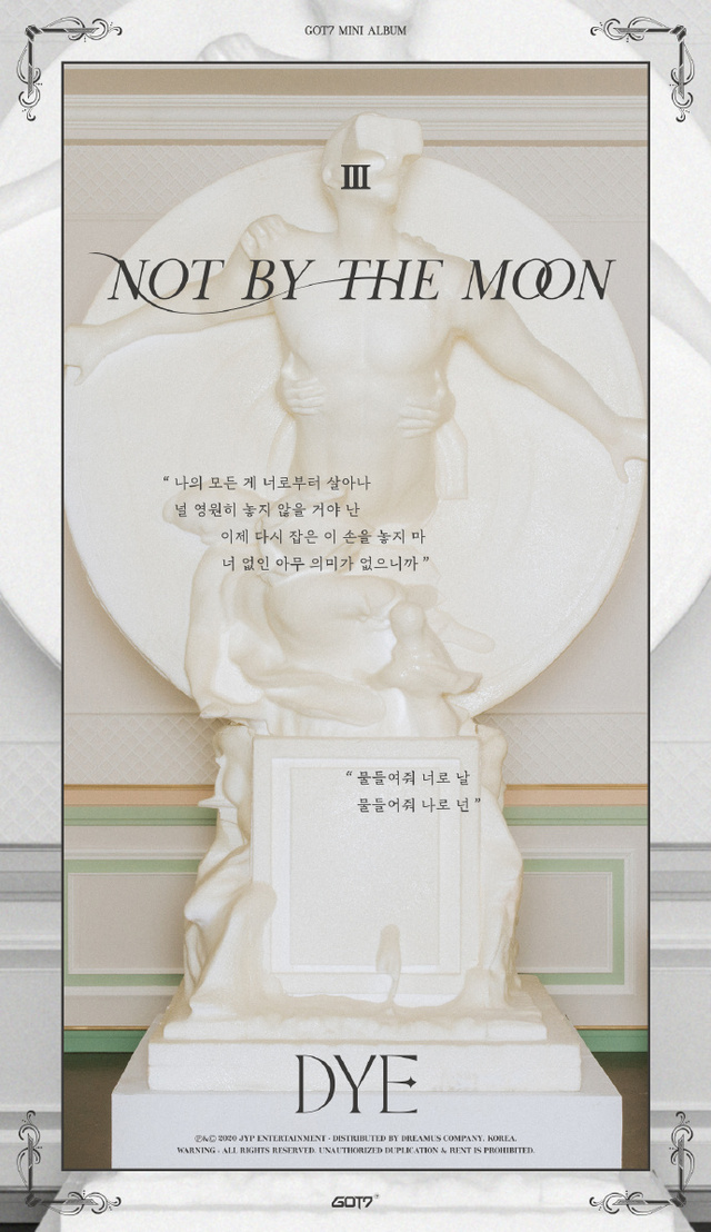 蕴含着如此浪漫的情感的GOT7新迷你专辑《DYE》,将于20日下午6点通过各大音乐网站公开。当天下午8时,GOT7还将通过Naver VLIVE向全世界现场直播回归Showcase《GOT7 LIVE PREMIERE》。