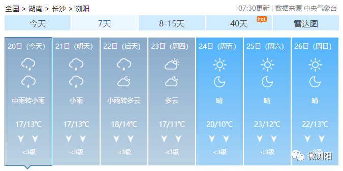 未来一周浏阳天气