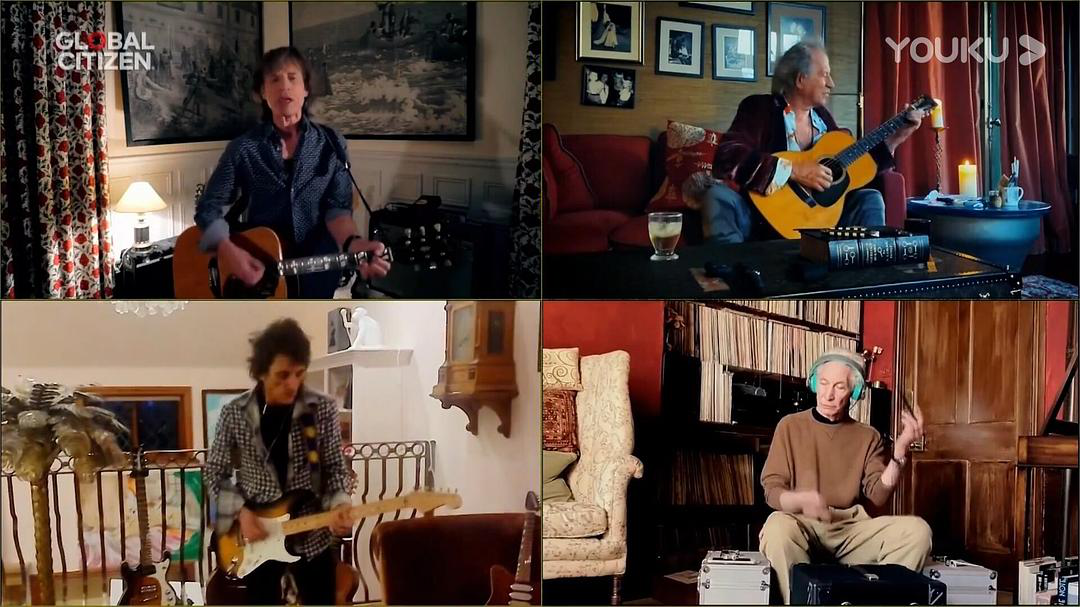 73岁的英国流行摇滚巨星埃尔顿·约翰在春意盎然的花园中弹奏钢琴,演唱了经典作品《I’m Still Standing》;摇滚传奇乐队滚石四位老炮隔空重聚,并表演了1969年的经典作品《You Can’t Always Get What You Want》,在熟悉的音乐中,乐队鼓手查尔斯·沃茨在家中没有鼓的情况下一直在打“空气鼓”,生动可爱。