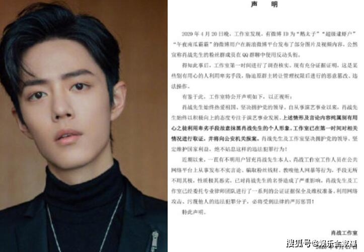 对此肖战工作室第一时间取证报案,同时在社交平台上发布声明,对于恶意损害肖战名誉的人绝不姑息,并表示肖战本人坚决拥护党的领导,坚定维护国家利益。