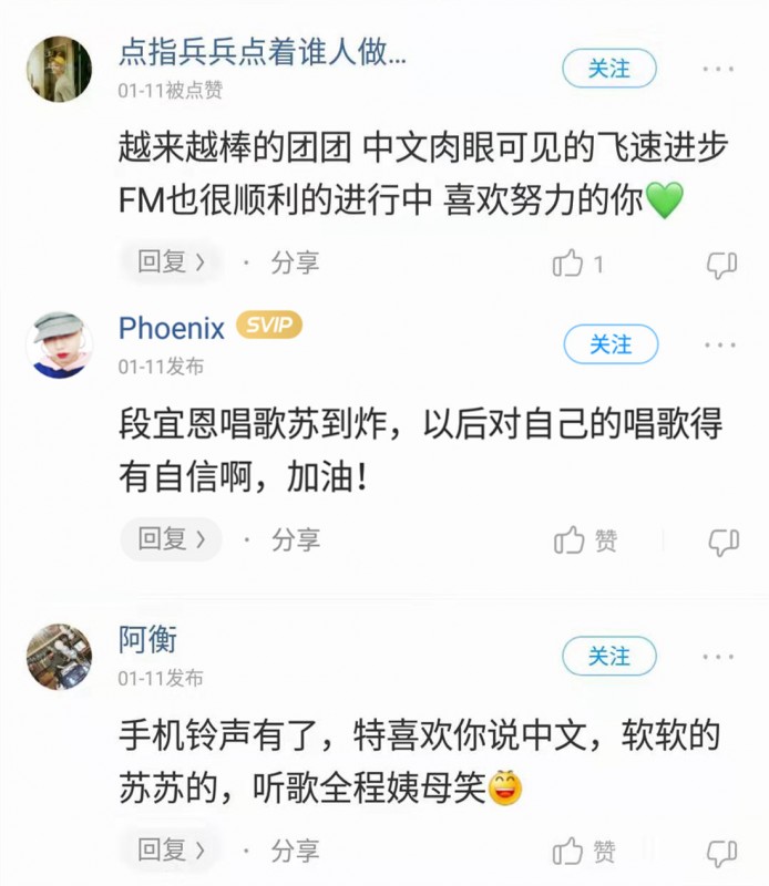 而在酷狗评论区,网友们在听歌的同时不忘留下自己的惊叹,有人直言在歌中看到段宜恩“中文肉眼可见的飞速进步”,而段宜恩的中文在网友眼中是“软软的苏苏的”,听起来“苏到炸”。