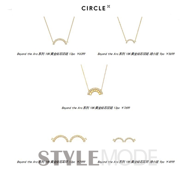 Beyond the Arc系列珠宝采用18K黄金镶嵌闪耀钻石打造而成。CIRCLE品牌标志依偎在桥的旁边,寓意女性正欲出发,发现未知世界。系列项链有三款不同设计,分别为9钻款和13钻款单曲线项链以及更有体积感的双层曲线项链。同系列耳钉亦有9钻款及13钻款两款设计可供选择。